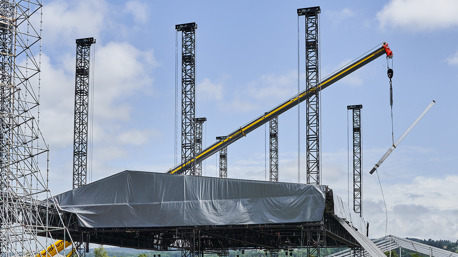 To create a massive roof of this size, riggers and construction workers used Milos Tower trusses S-QTPT, with the main grid utilising the MILOS S-RTW. Both trusses were of course made of ultra-high strength steel to withstand the phenomenal load.