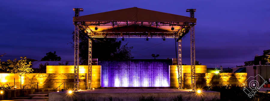 The City of Lewisville has a 33’x20’ semi-permanent roof (March – October) installed at the Medical Center of Lewisville Grand Theater at Wayne Ferguson Plaza. The roof consists of Medium Duty truss with a rafter system on 12” Light Duty towers.